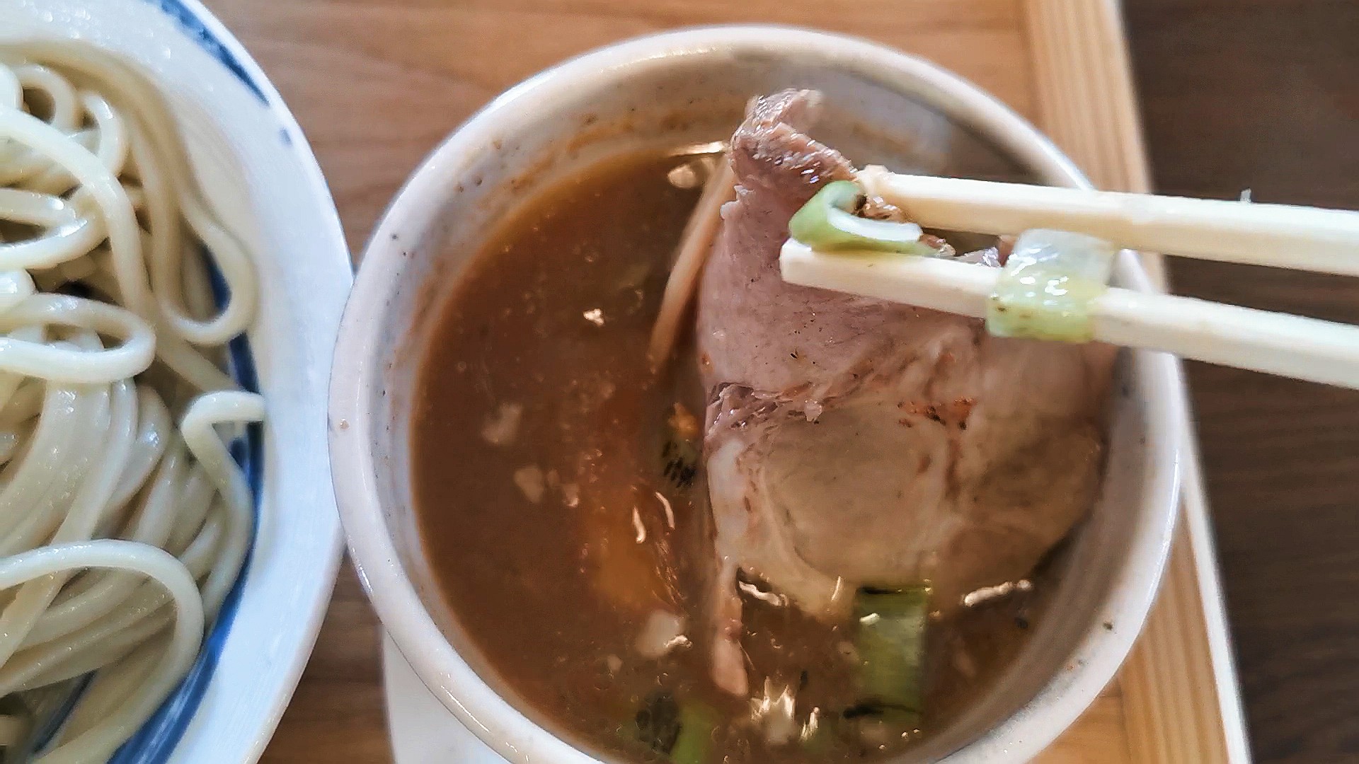 連れは特製ラーメンの醤油、私はつけ麺の並、肉めしをオーダー!