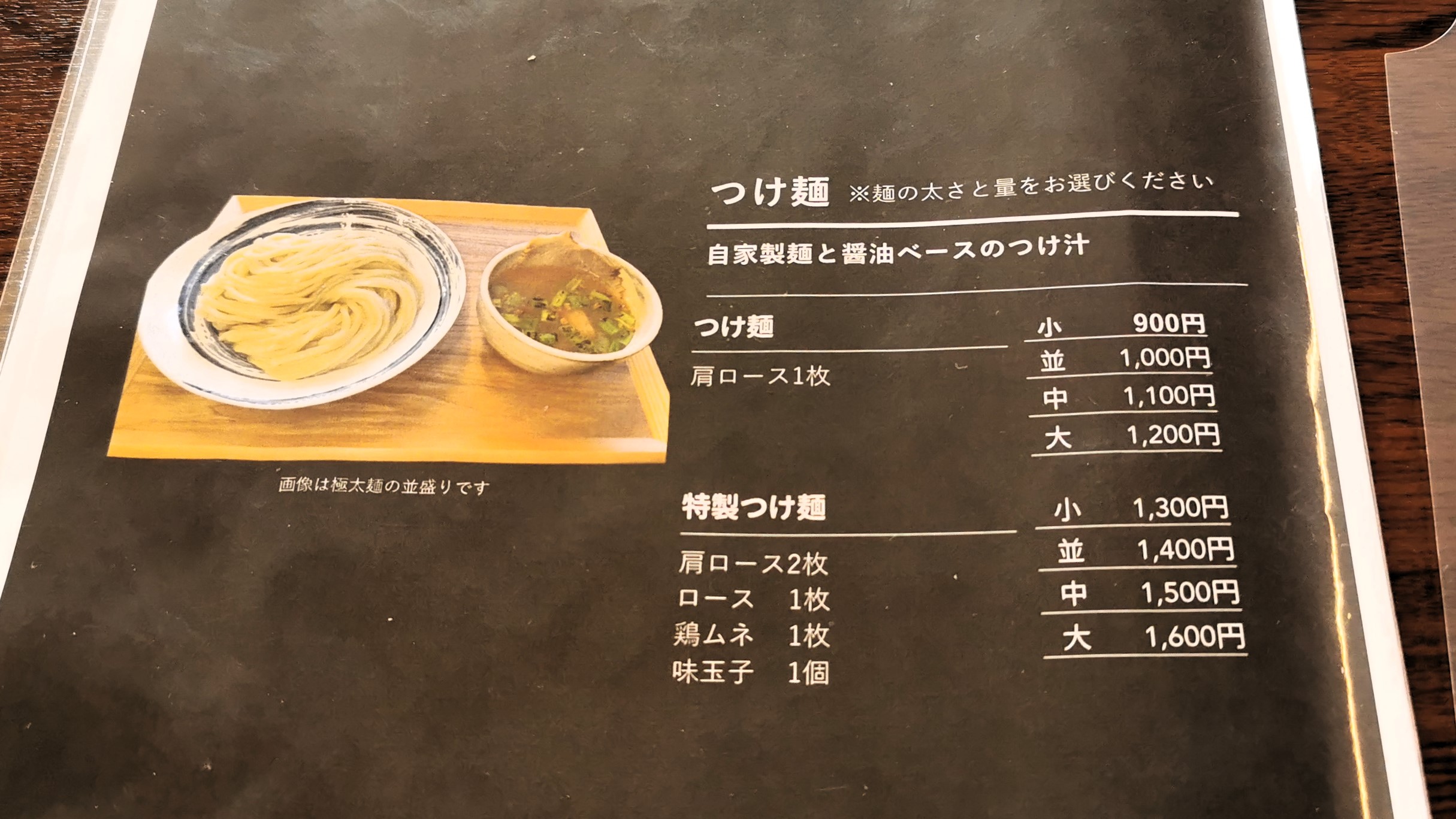 麺は極細、中太、極太が選べますがつけ麺はやっぱり極太でしょ!