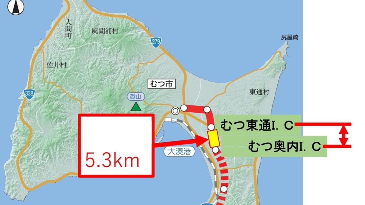 もう一か所開通したのがむつ奥内ICから東通りICまでの5.3km!